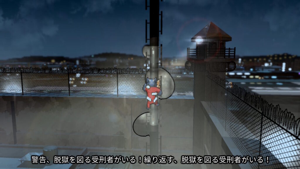 例えば脱獄ルートの一つに、サーチライトを避けながら電波塔のケーブルを使って脱出する場面があります。