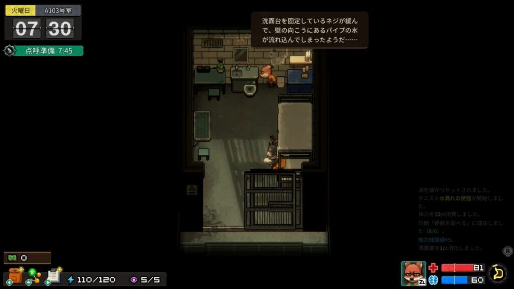 昼は働いてお金を稼いだり、囚人たちと交流したりしながら情報収集を行い、夜になるとトイレからパイプを通って下水道へ潜り込むなど、こっそりと行動できるようになります。