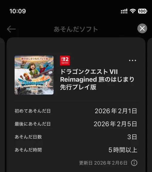 「さすがにここまで遊んでいないよな……?」と思い、本体側のプレイ記録を確認してみると、計算しても約54時間ほどとゲーム内のプレイ時間と明確な差がありました。