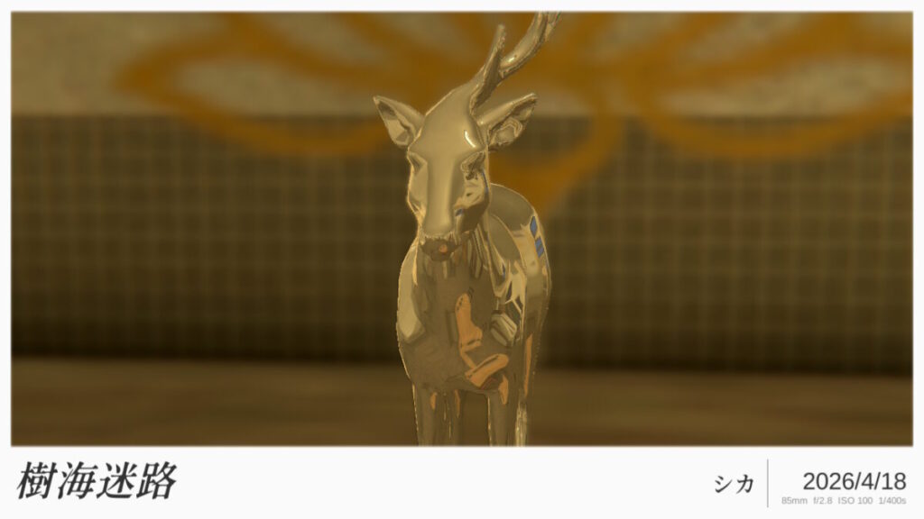 Steam版では樹海での撮影が可能なようですが、Switch版ではスペックの都合もあり、室内でのフォトモードになっています。