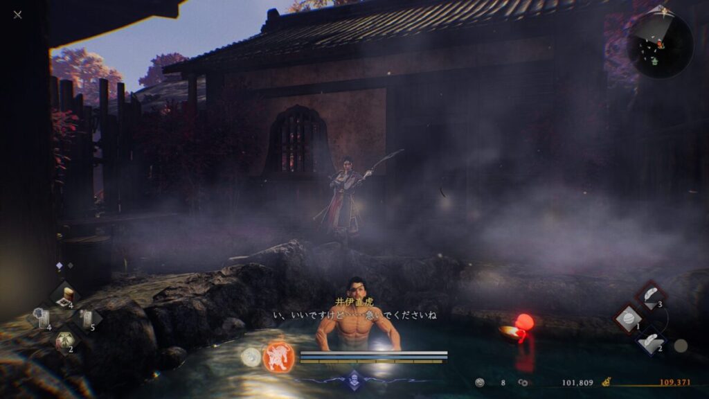 ただし「渓水の法」(忍術ゲージ加算量が85.0%増加する代わりにゲージが常時減少する)を使っていたため、ゲージ温存のため移動中だけはサムライに切り替えていましたね。