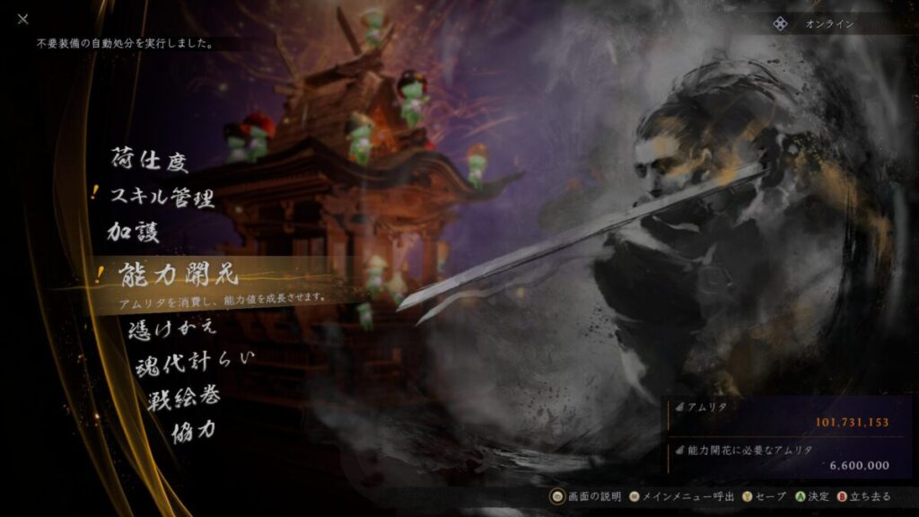 例えば不要な武器を一つひとつ売却したり、武具奉納でアムリタへ変換したりする作業は、正直かなり面倒です。