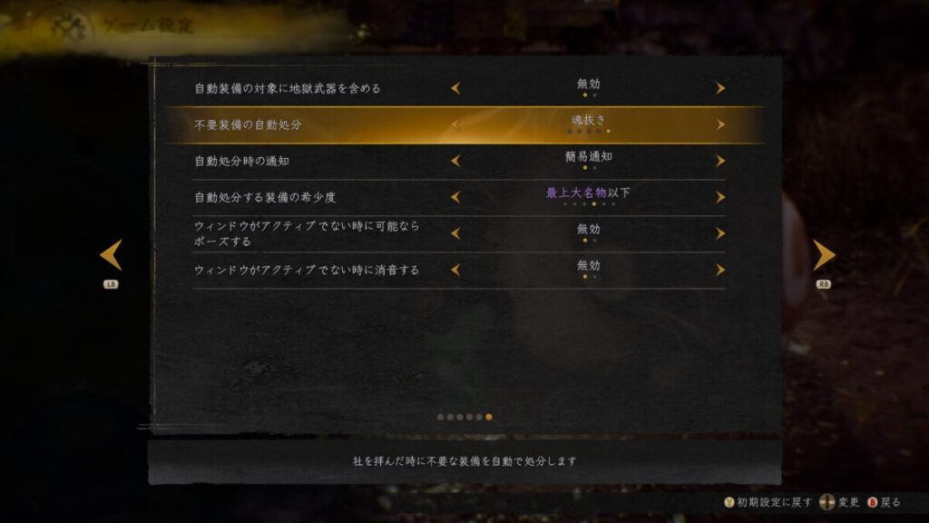 さらに、処分した装備をどう扱うかも設定可能で、売却・分解・奉納など用途を選べるのも便利です。